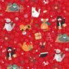 Cute little christmas gnomes wearing wooly hats, palying with christmas lights and decorations, on a light blue snowy background