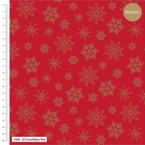 Gold metallic snowflakes on a red christmas fabric