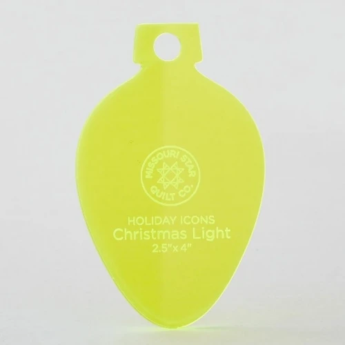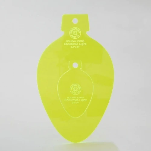 Cut Christmas light shapes easily and accurately with this nesting template set. Acrylic template has a shape for a 5.4” x 9” large lightbulb with a 2.5” x 4” small lightbulb nested inside. Great for appliqué.