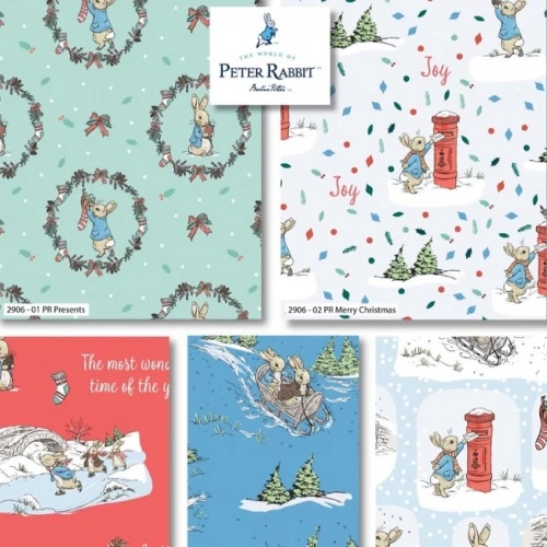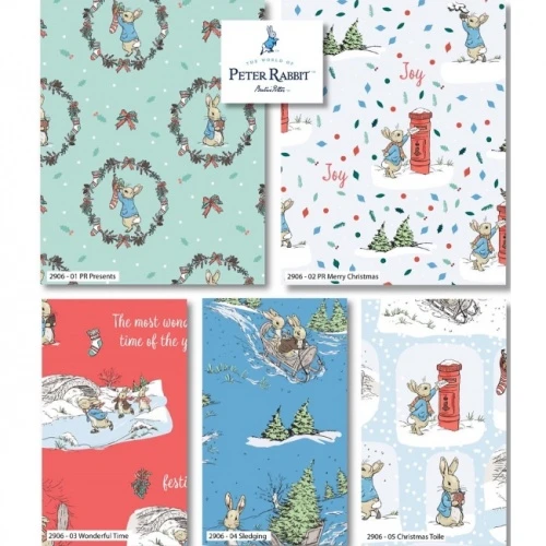 Peter Rabbit Wonderful Time Of The Year Christmas Fat Quarters X 5