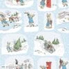 Three horses looking through the barn door which has been decorated with holly and christmas trees, there is a sign that says merry christmas hanging above the barn door