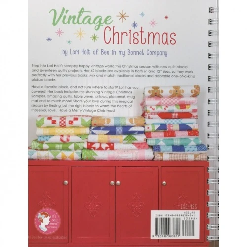Lori Holt of Bee in my Bonnet Company is excited to celebrate her favorite season with a new book from ItÂ’s Sew Emma – Vintage Christmas! Step into LoriÂ’s scrappy happy vintage world this Christmas season with all-new quilt blocks and over ten quilty projects. Her 42 blocks are available in both 6” and 12” sizes, so they work perfectly with her previous books and mix traditional blocks and adorable one-of-a-kind picture blocks.Have a favorite block,and not sure where to start? Lori has you covered Â… her book also includes the stunning Vintage Christmas Sampler, other amazing quilts, tablerunner, tree skirt, placemat, mug rug and so much more! Share your love during this magical season by finding just the right blocks to warm the hearts of those you love. Have a merry Vintage Christmas.